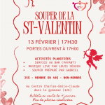 Responsable : Yvon Laflèche Pénétrez dans l’univers captivant du jeu de cartes Euchre, où compétition et convivialité se rencontrent! , ...Souper de la Saint-Valentin au CCÉC – vendredi 13 février5:00 pm - 11:00 pm
