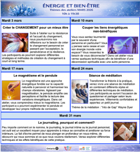 Explorez ces ateliers interactifs pour comprendre votre énergie divine et aspirer à un mieux être.